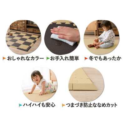 【キャッシュレスポイント還元】 EVA製 ジョイントマット ベビー フロアーマット 防音 フロアマット emoor 通販 商品詳細 品名 くらしに馴染むEVAジョイントフロアマット 追加パーツ サイズ 正方形パーツ:幅約32×奥行約32×厚み約1.5cm 長方形パーツ:幅約32×奥行約9×厚み約1.5cm コーナーパーツ:幅約9×奥行約9×厚み約1.5cm 素材 EVA樹脂 カラー ・正方形パーツ 正方形ベージュ、正方形ブラウン ・長方形パーツ 長方形ベージュ、長方形ブラウン ・コーナーパーツ コーナーベージュ、コーナーブラウン お手入れ ・汚れた場合は速やかに水洗いしてください。