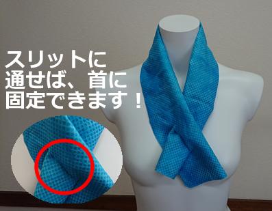 吸水性は抜群で普通のスポーツタオルのように 汗や水分をしっかり吸収! 内部には湿度を保ちながら表面は乾いたような 不思議な触感! だから、水に濡らして軽く絞った状態で、首に 巻いても水が垂れません。